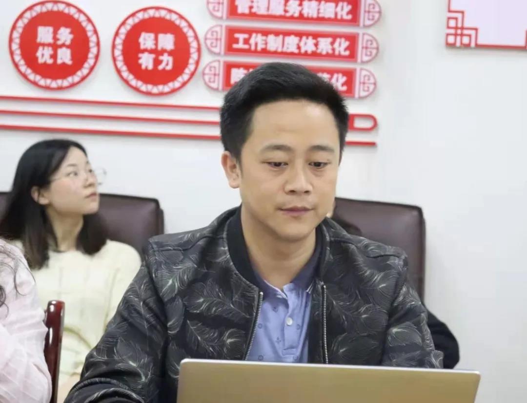 图为 员工党支部书记彭俊(左)、石静咏诗(右)组织学习