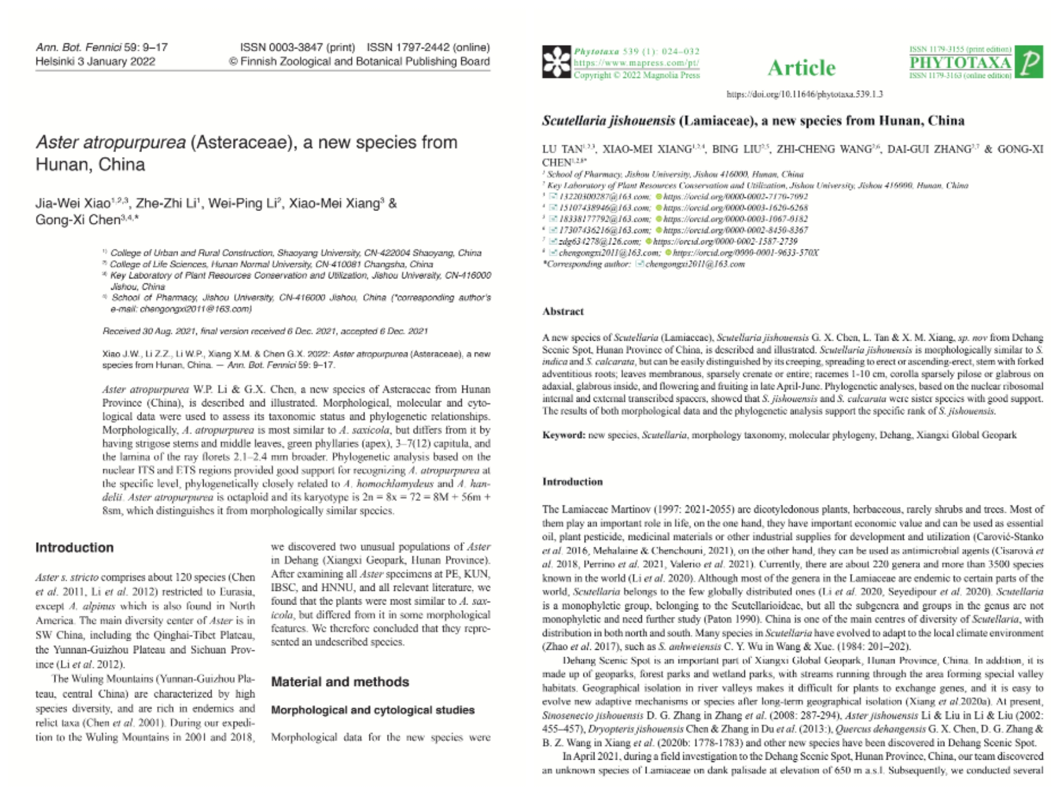 本网讯(通讯员 石静咏诗)近期,陈功锡教授团队师生于(湘西世界地质公园)吉首德夯风景名胜区内发现了2种此前在世界上还从未被人们所知晓的植物新物种,为之命名并分别在国际刊物Ann.Bot.Fennicai以及Phytotaxa上正式发表。据悉,两新物种皆为民间药用植物,目前仅发现在吉首境内有分布,为典型的地方特有物种,并且数量不多!