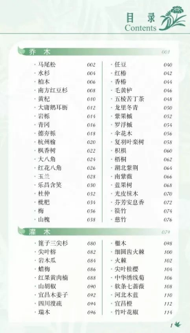 图为 《德夯风景名胜区旅游植物手册》部分目录