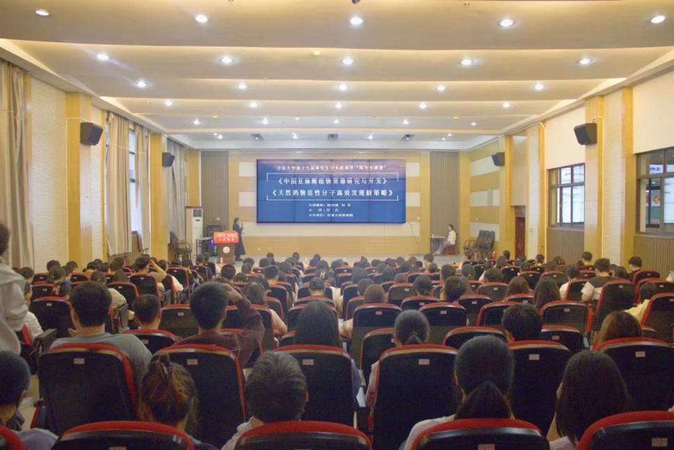 本网讯(通讯员 江心迪)为了激发同学们对知识的探索热情,提升学术素养,在全国第八个科技工作者日之际,5月30日19点,伟德中国官网入口“药学讲坛”第二十一期、“伟德中国官网入口第十六届研究生学术活动节”主题论坛系列活动之—,“天然药用植物资源研究与开发”学术报告会于大田湾校区2609学术报告厅举行。本次报告会主讲嘉宾为伟德中国官网入口经理陈功锡教授和刘芬博士,报告主题分别为《中国亚麻酸植物资源研究与开发》和《天然活性分子高效发现新策略》,会议由叶凡博士主持。参会人员涵盖了伟德中国官网入口部分教师、研究生以及21至23级本科生共200余人。