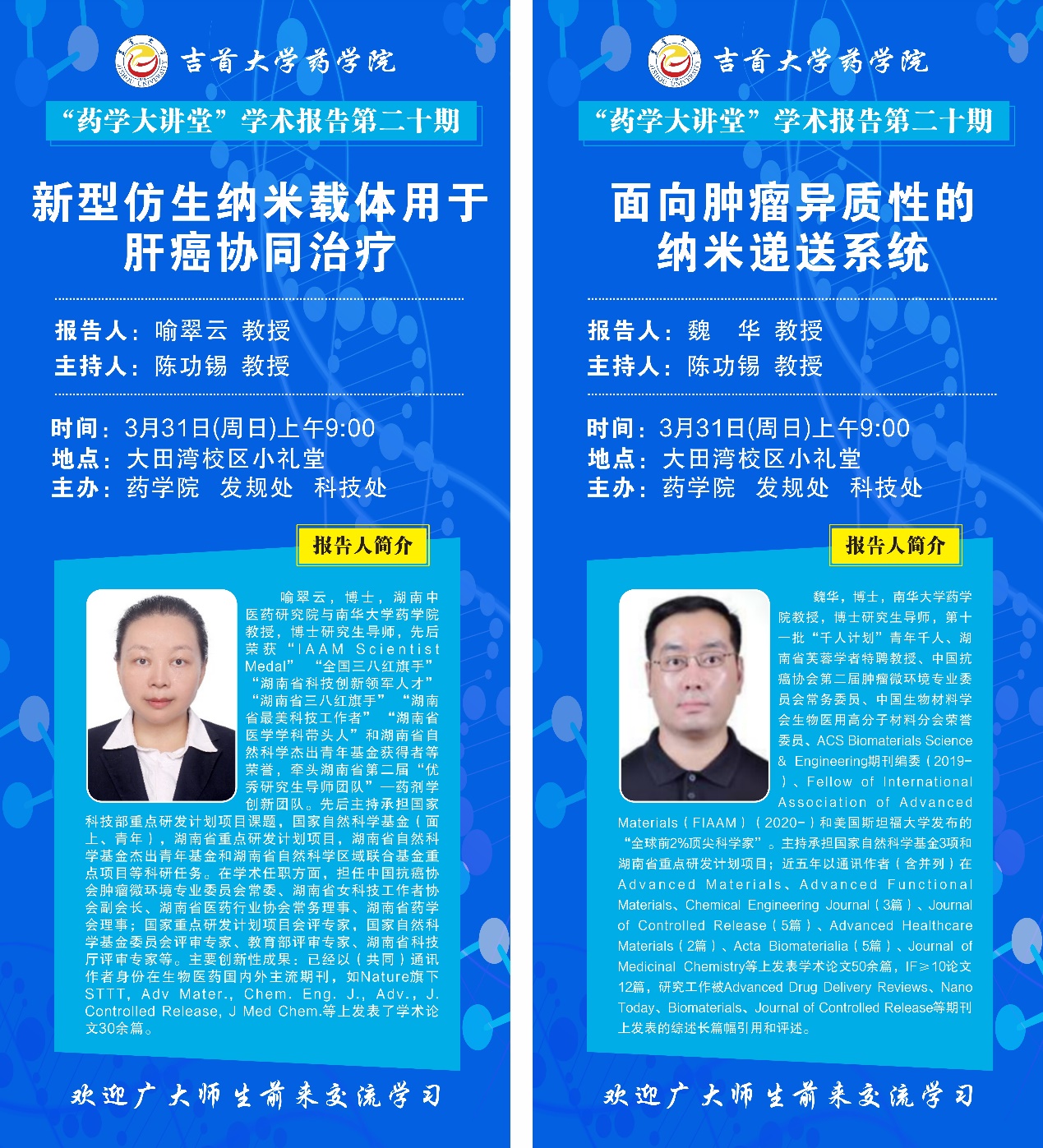 “药学大讲堂”第二十期 | 新材料载体与癌症治疗药物