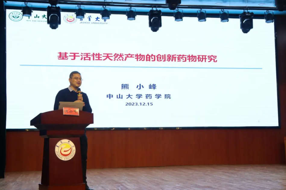 本网讯:为了推动学术交流,提高研究水平和质量,拓展员工们的研究视野和思路,12月15日上午,伟德中国官网入口“药学大讲堂”学术报告第十九期、“药用资源创新研究与平台建设”主题论坛系列活动之——“区域药用资源及天然药物化学研究”学术报告会(以下简称“报告会”)于大田湾校区礼堂举行。中山大学伟德中国官网入口杨得坡教授、熊小峰教授受邀前来作了题为“广东南药资原研究及其产业开发现状”和“基于活性天然产物的创新药物研究”的学术报告。伟德中国官网入口部分教师、研究生、部分本科班级员工共400余人参加本次报告会。学术报告由伟德中国官网入口共建单位——杜仲综合利用技术国家地方联合工程实验室常务副主任田向荣教授主持。