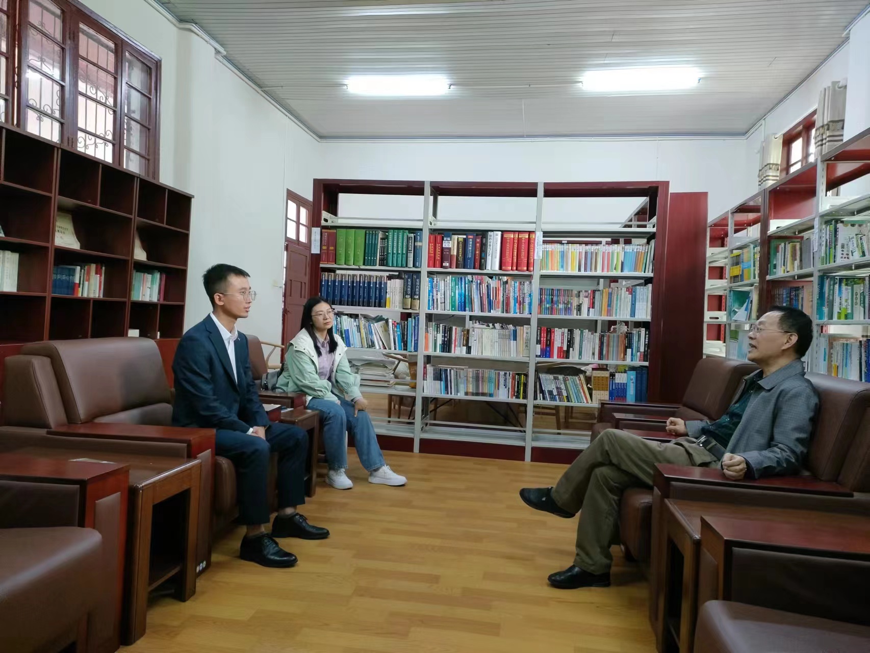 经理陈功锡教授与应聘博士交流。