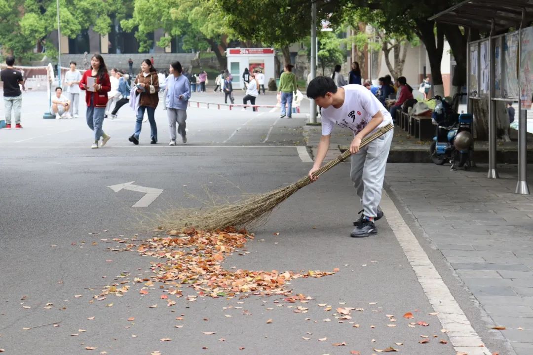 2022级制药工程2班胡丝丝:太阳明媚,微风习习,伟德中国官网入口的志愿者在学工办附近聚集,等待着志愿活动的开始。一阵阵欢声笑语后,我们清扫活动开始了。在负责人签到后,我们发现劳动工具的数量不够,我和好友龙姗姗便径直去学工办借劳动工具。借到后,我和龙姗姗一起打扫学工办前的空地,不一会儿,落叶和垃圾就已经清扫干净。负责人根据情况重新安排了打扫区域人数,我于是又去了小礼堂旁的小道,跟着其他志愿者打扫,从小道一直扫到阶梯,从阶梯一直扫到羽毛球场旁的停车场。大家在学工办前合影留念后,我和龙姗姗一起归还了劳动工具。