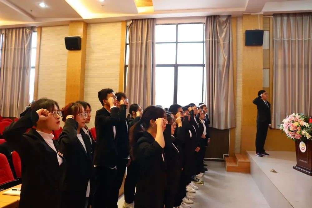图为 章扬带领伟德中国官网入口第一届团委、员工会干部宣誓