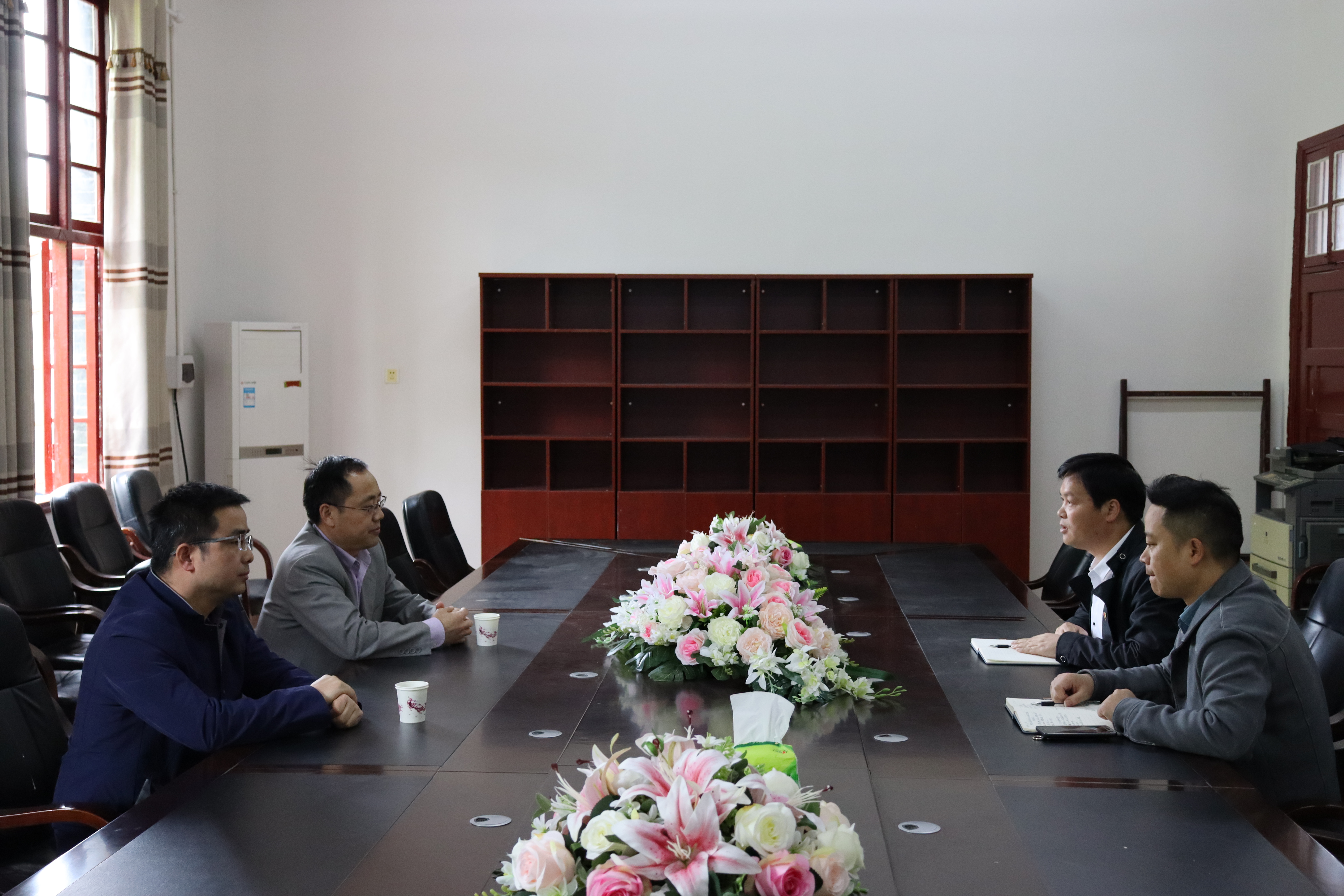 本网讯(李懋) 4月28日上午,人才招聘处副处长向军,招生办副主任姚文龙来公司调研并指导人才招聘工作,公司党委副书记王江生,学工办彭俊,办公室潘金凤与会交流工作。