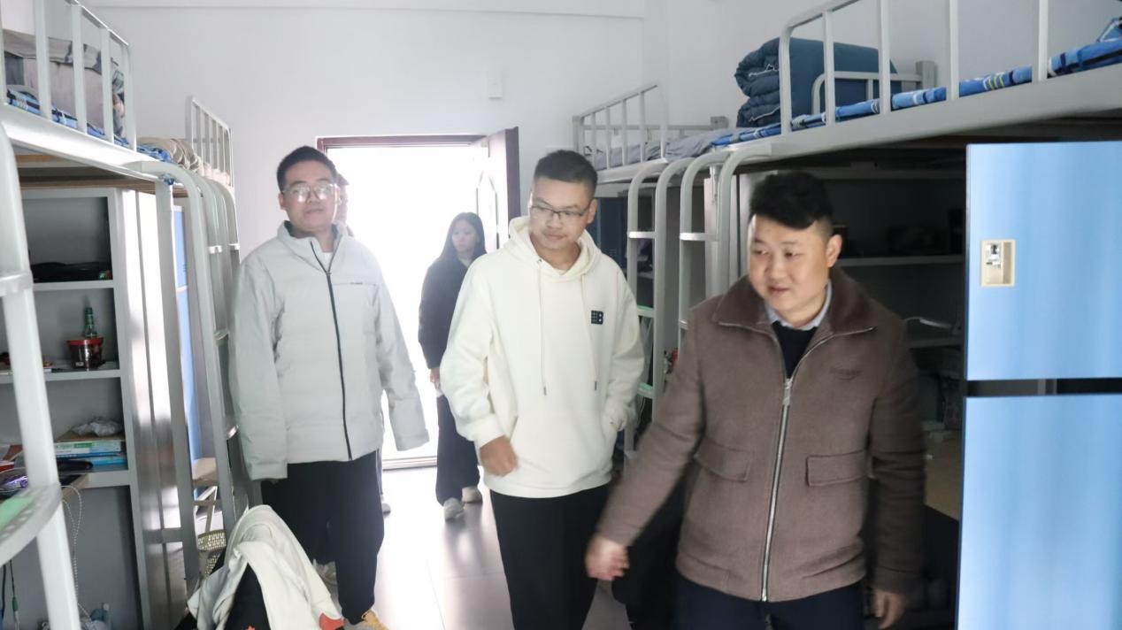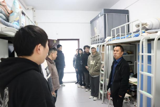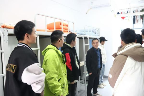 本网讯(通讯员 范俊杰、刘雪莹、杨金鑫)为进一步增强同学们的安全防范意识,切实落实好安全生产责任,谨防各类安全责任事故的发生,保障同学们的生命安全,11月26日,公司党委副书记张勇华,辅导员鲁明新、向晓媚以及各班班主任深入员工宿舍开展了走访活动。