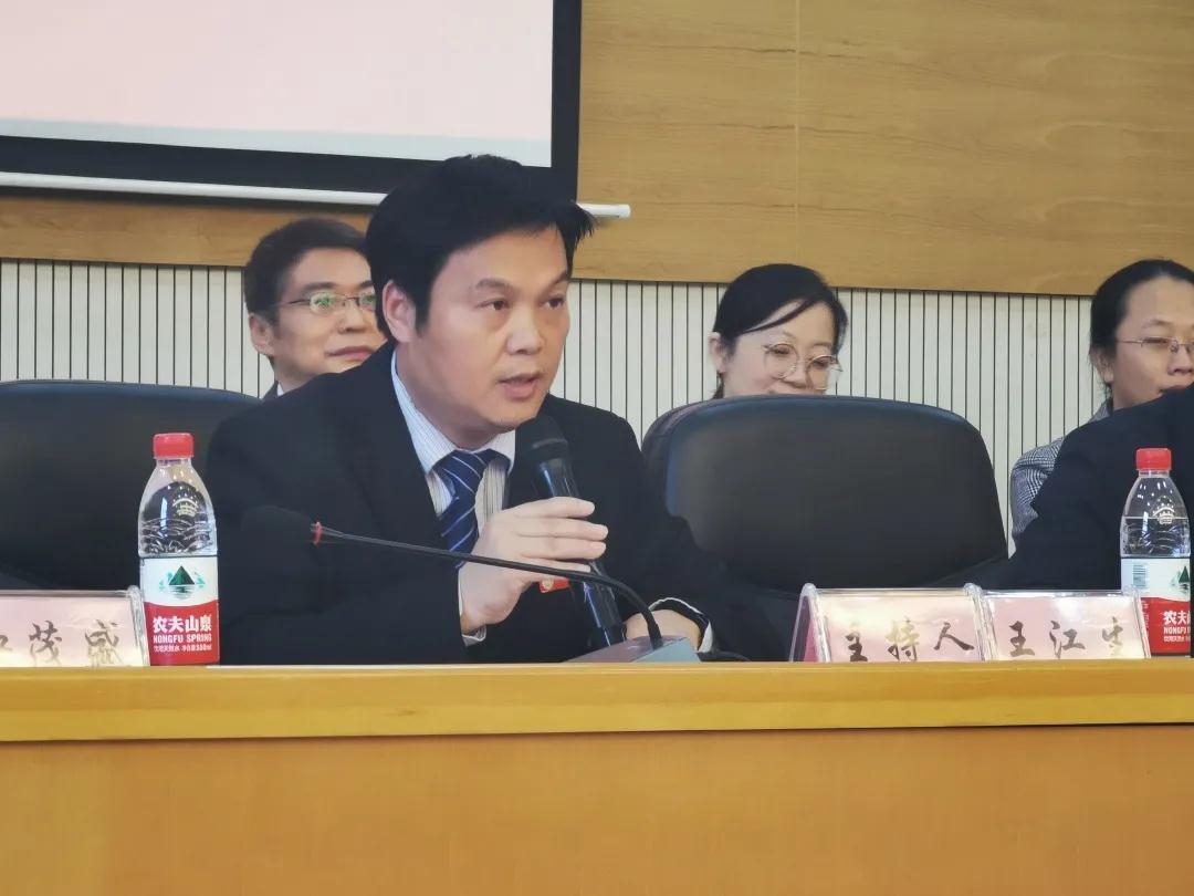图为 药学系主任盛益华博士发言