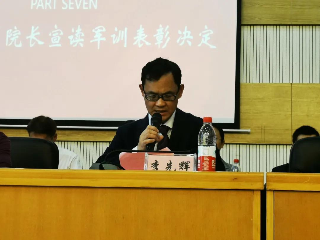 图为李先辉副经理宣读军训表彰文件