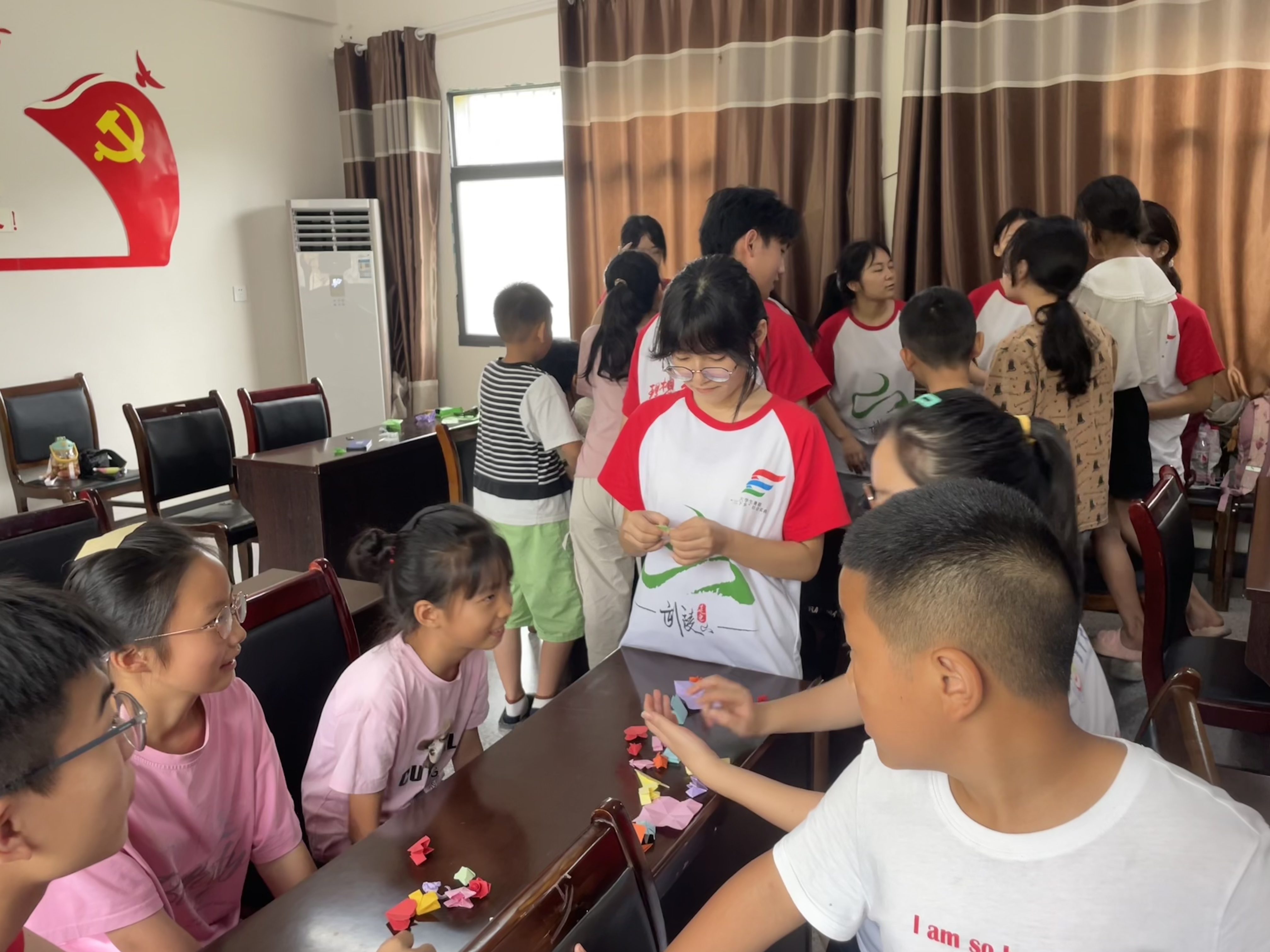 支教科普组用游戏《名字接力》拉近同学之间、同学与老师之间的关系。紧接着的折纸环节,让同学们充分感受到了课堂的轻松活泼使他们不那么拘谨。课堂结束后,支教科普组成员们向同学们询问了课堂意见,并进行了家访,有小朋友表示:“我很喜欢老师们上的课,明天我还会继续来上课的,找老师们开心学习。”
