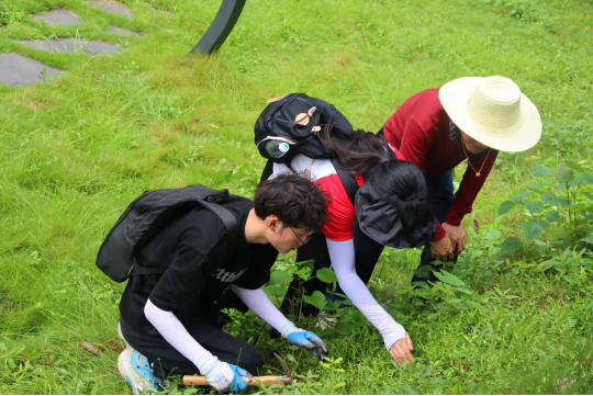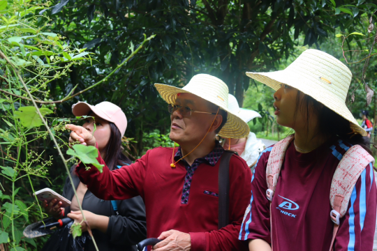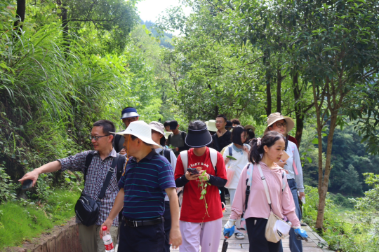 活动期间,依托吕洞山丰富的植物资源,带队老师引导同学们将课本上的文字描述与自然界的植物实体相结合,推陈出新,感悟新知,并对各类植物的形态特征、开发利用情况进行介绍、讲解。在老师的言传身教下,员工们不仅回顾了课堂知识,同时也对中药植物的魅力与价值有更加深刻的了解。