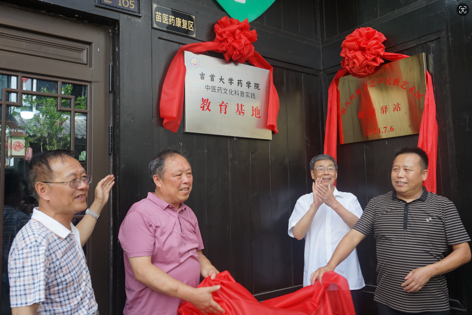 伟德中国官网入口中药学专业野外实习队参观了苗父堂苗医药展示与体验区,了解苗药治疗过程与治疗原理,深入学习中草药功效。参观完后,举行伟德中国官网入口中医药文化科普实践教育基地授牌仪式,一行人于苗父堂前合影留恋。