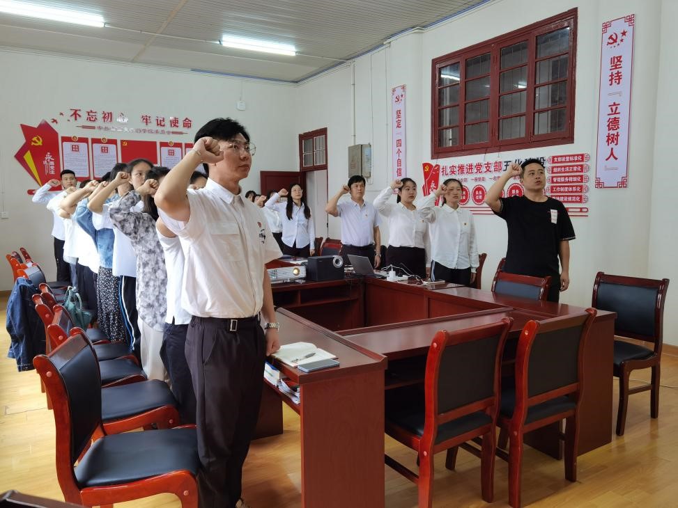 会上,彭俊带领全体党员同志重温入党誓词。