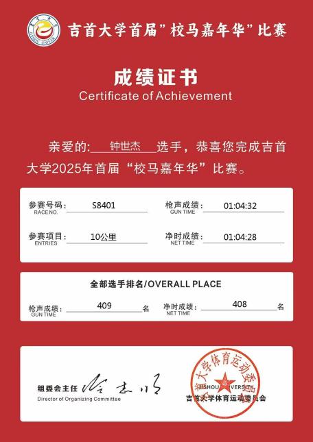 图为 钟世杰获奖证书