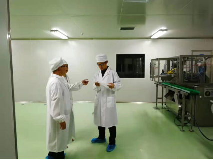 图为 李先辉深入斯达制药生产车间调研