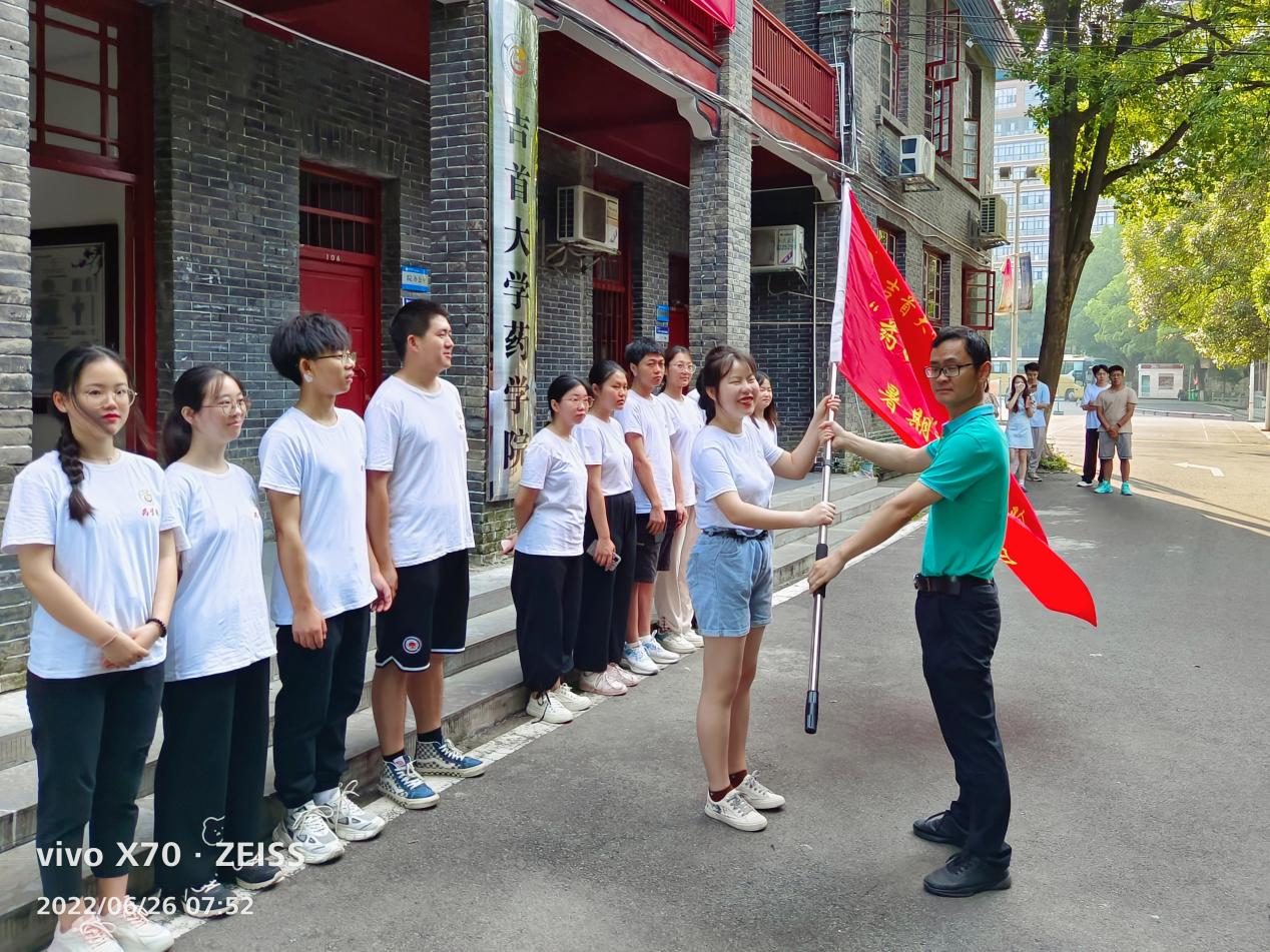 图为 李先辉为社会实践团队授旗