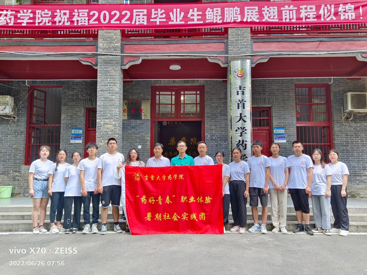 图为“药好青春”职业体验暑期社会实践团成员与老师合影