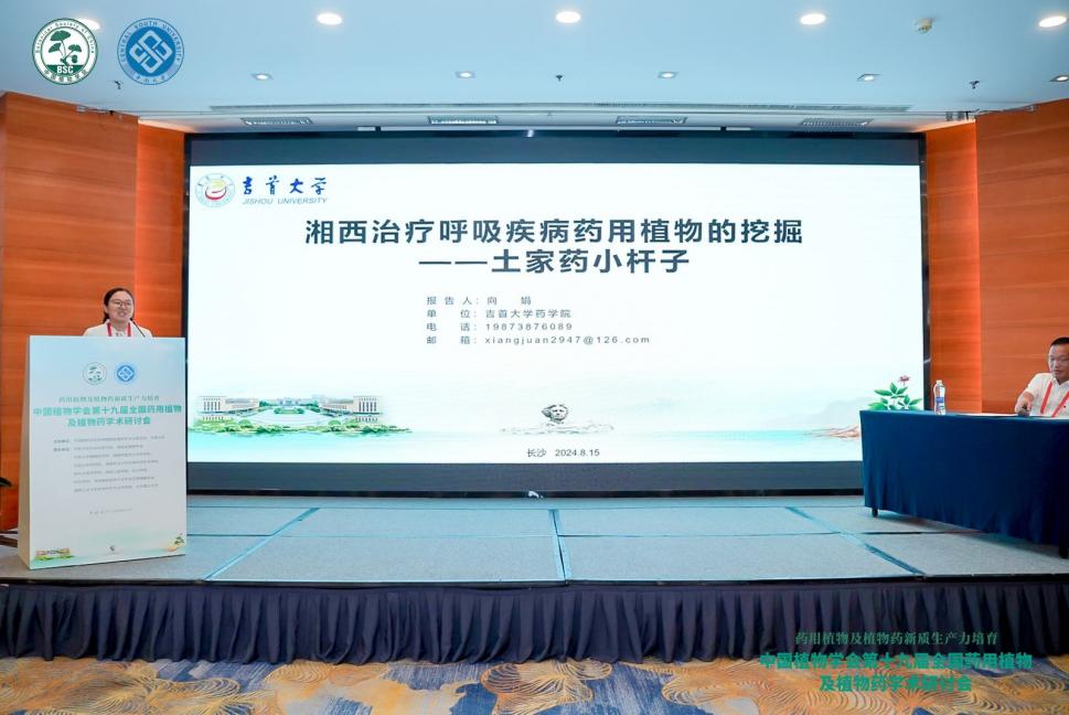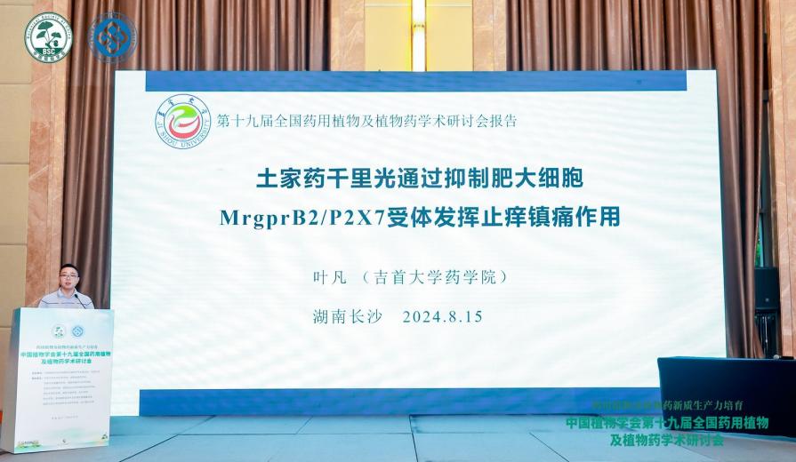 本次会议中,作为中国植物学会药用植物及植物药专业委员会委员,陈功锡教授负责主持了两场学术报告。作为专委会青年委员,伟德中国官网入口中药学系主任向娟副教授在第三分会场做了题为“湘西治疗呼吸疾病药用植物的挖掘—土家药小杆子”的报告,青年老师叶凡博士在第二分会场做了“土家药千里光通过抑制肥大细胞MrgprB2/P2X7受体发挥止痒镇痛作用”的报告,向与会学者展示了他们的研究成果,受到了广泛的关注与好评。