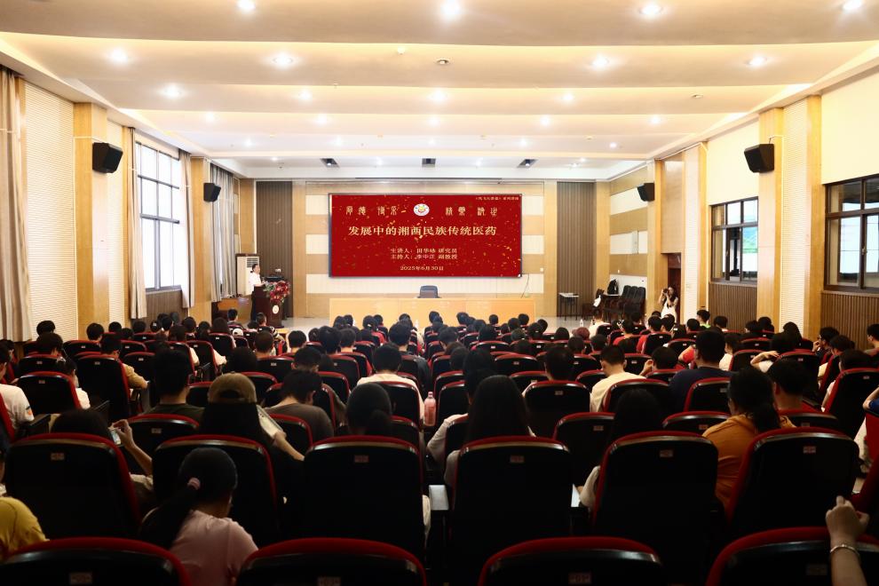 田华咏围绕湘西民族传统医药展开报告,回溯其发展历史,提及3万年前药王行医故事,强调千年来民族医药对民众繁衍生息的护航作用。他讲述了现代湘西民族医药助力健康湘西建设的成果并介绍中医药产业链对全州经济与社会进步的推动。“发展湘西中医药事业,留存民族医药根基格外重要。”田华咏如是说,为同学们全面地呈现了湘西民族传统医药在传承与发展中的价值。