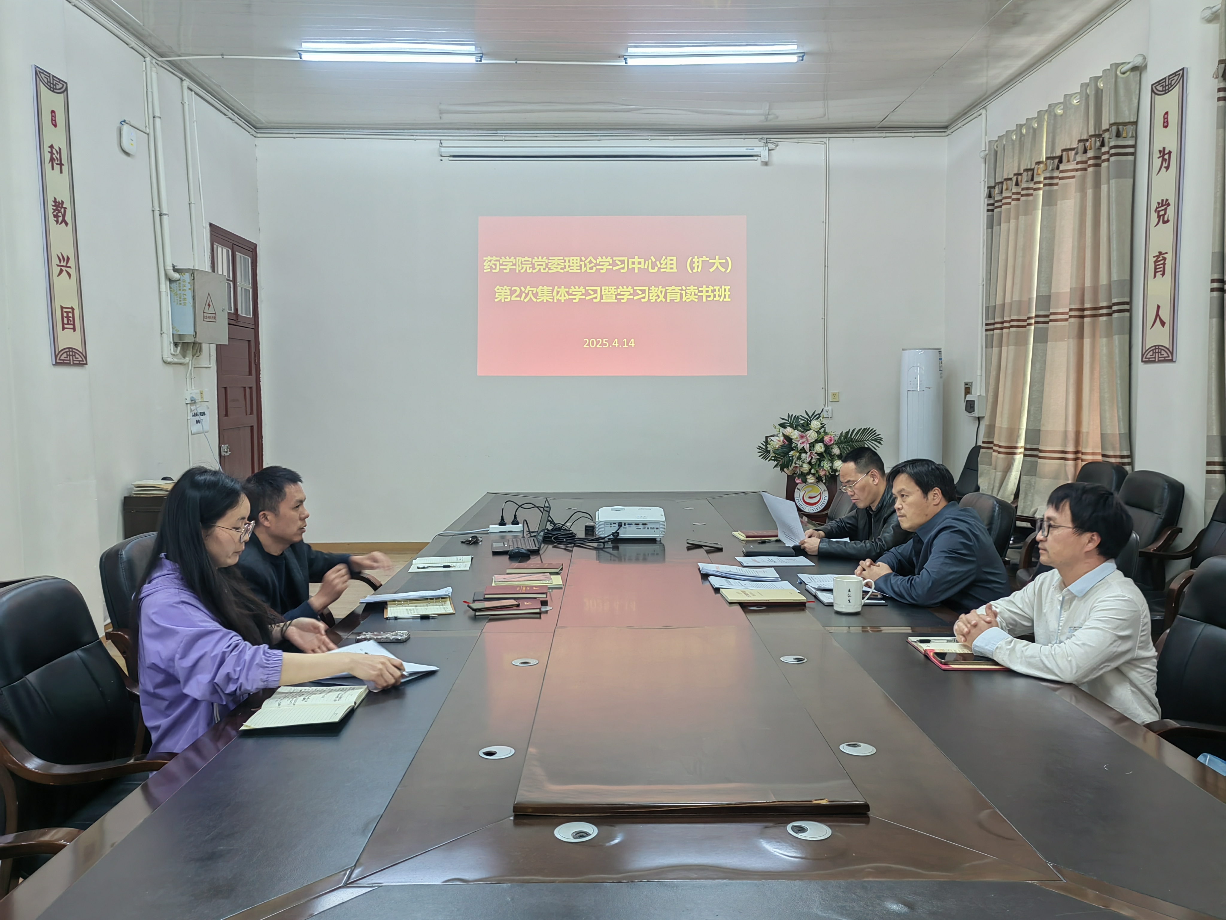 本网讯(潘金凤)4月14日上午伟德中国官网入口在会议室举行理论学习中心组(扩大)2025年第2次集体学习暨学习教育读书班,院领导班子、各支部书记参会,党委书记王江生主持学习活动。
