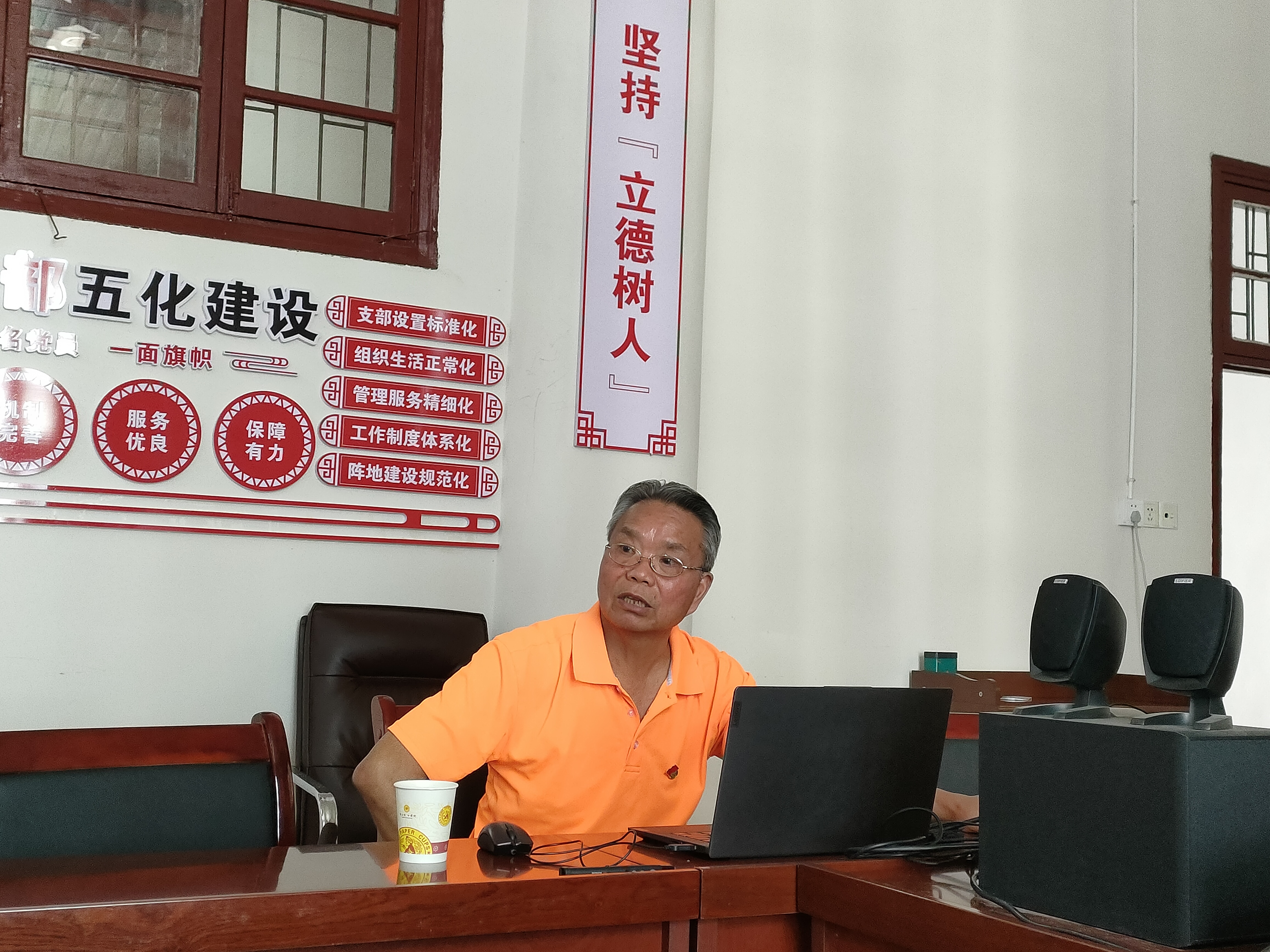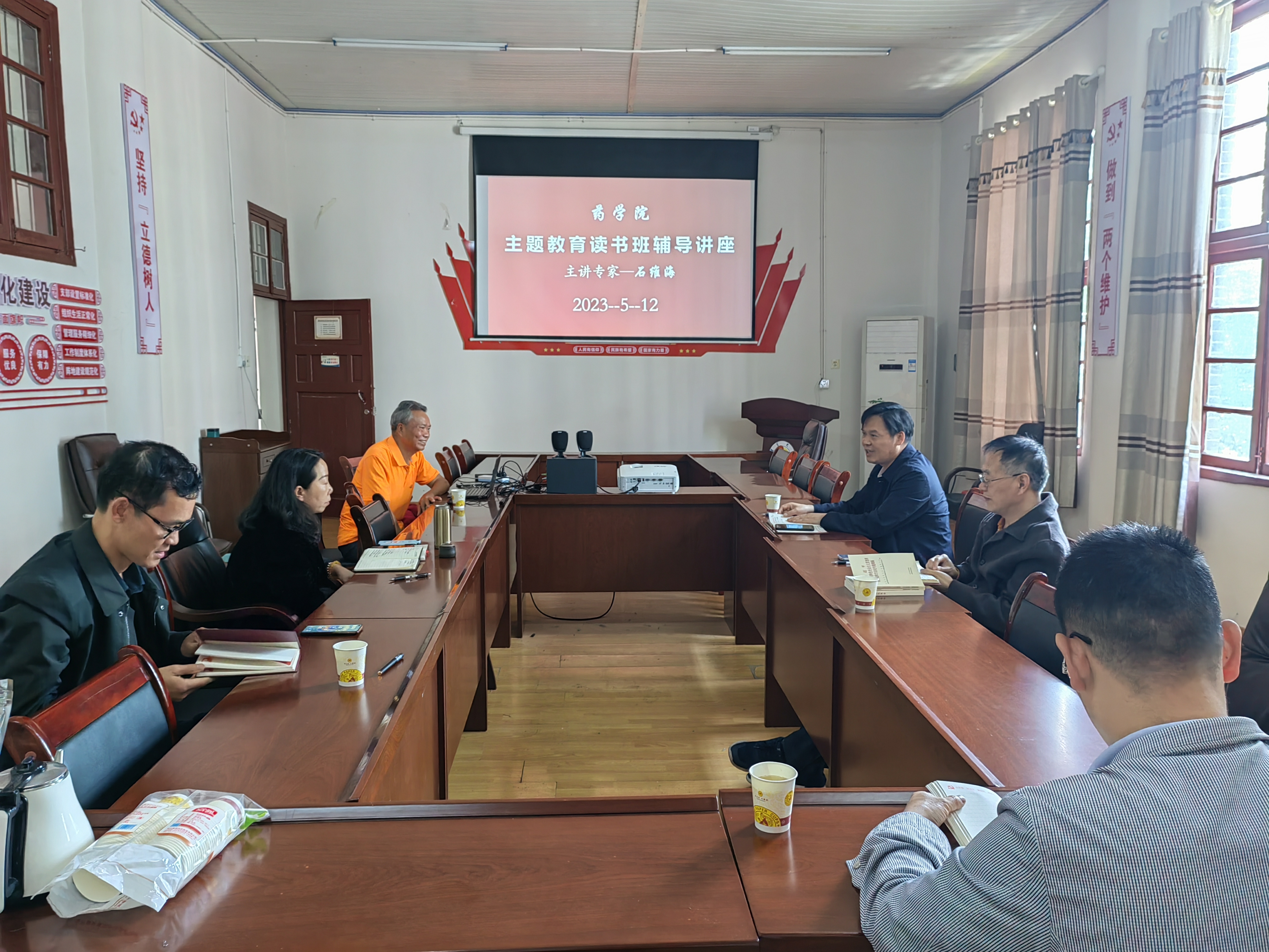 图为石维海老师作主题教育辅导报告。