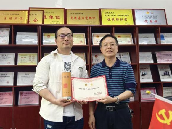 图为 陈功锡经理为喻翠云教授、魏华教授颁发聘书