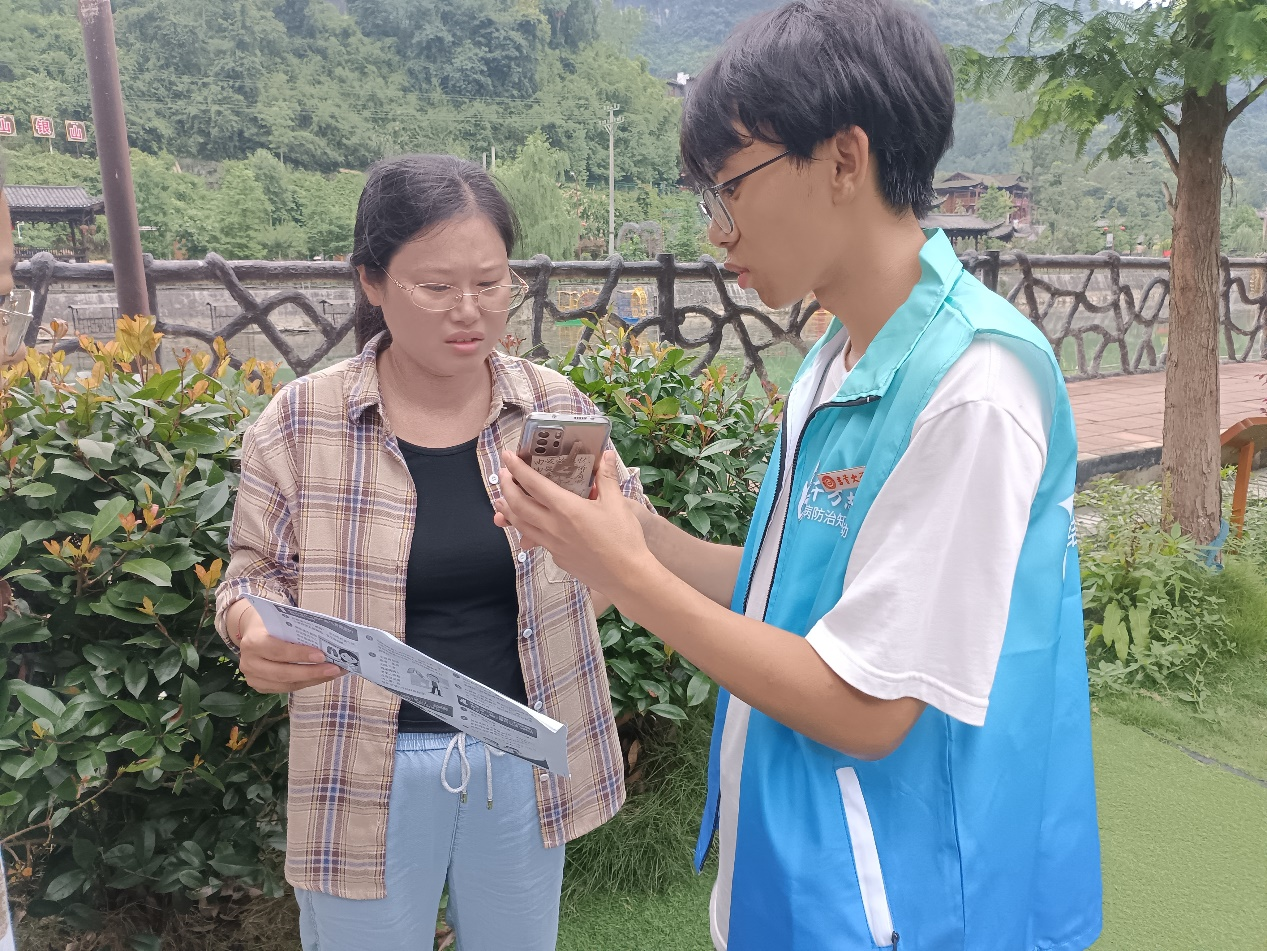 图为 志愿者与村民口头交流,了解他们对结核病的认识