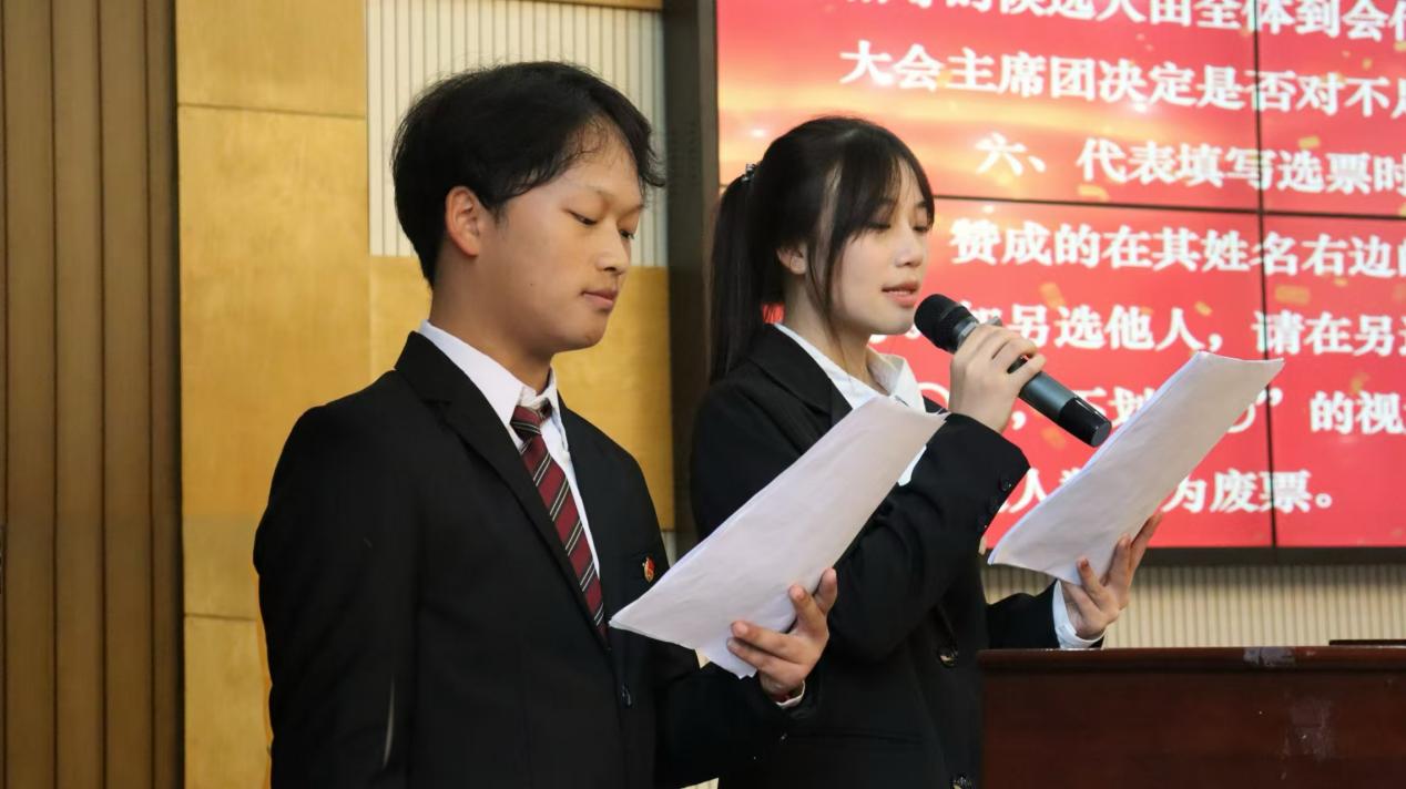 开幕式后,大会进入选举环节,选举环节由向晓媚主持。大会表决通过了选举办法和监票人、计票人名单,工作人员向全体代表介绍了各候选人简历,随后正式员工代表进行投票选举。邓雯、罗佩钰、张庚庚当选伟德中国官网入口第四届主席团成员,邓雯、范俊杰等9名同学当选出席伟德中国官网入口第二十三次员工代表大会代表。