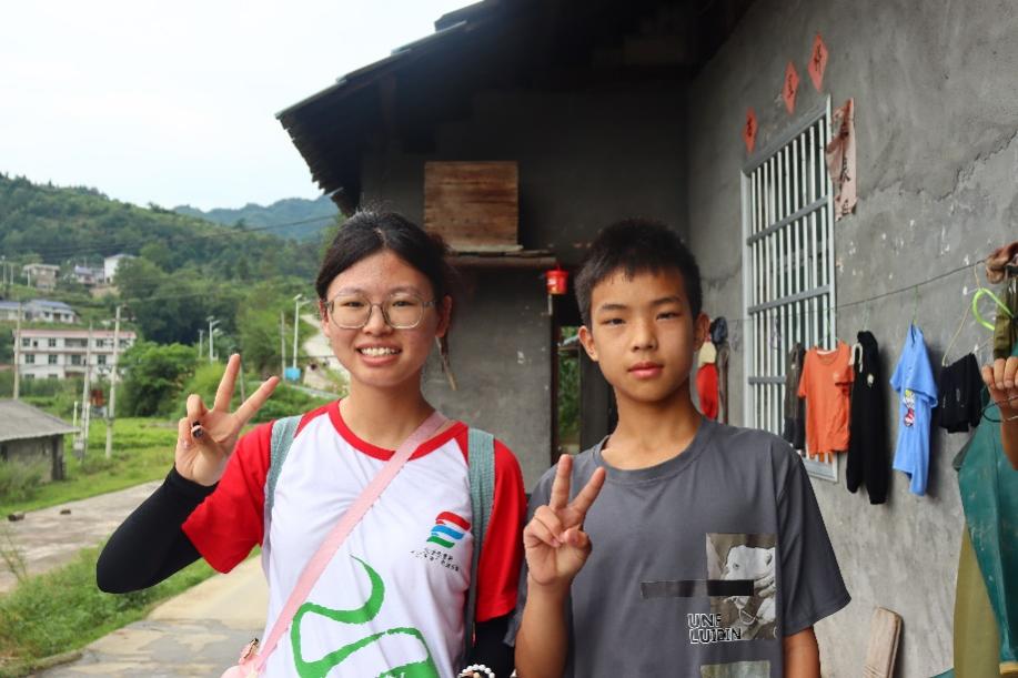 图为 实践队员与村内青少年的合照