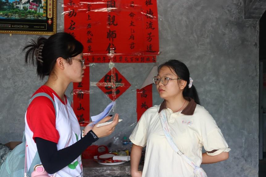 图为 实践队员对村内未成年人进行问卷调研
