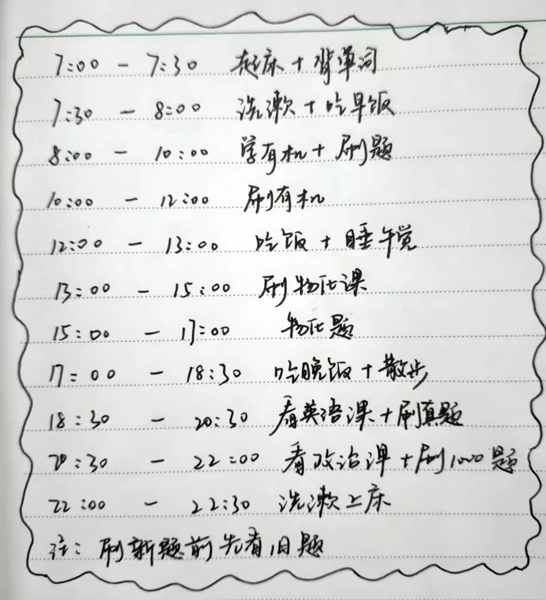 图为 张思佳备考期间制定的时间表