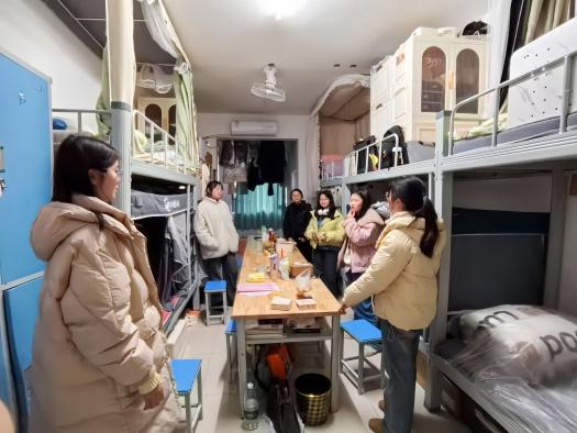 下寝走访过程中,领导老师们贴心询问员工们的期末考试情况,对员工提出的问题答疑解惑,关心大一员工上学期的适应状况,关注大二员工是否参加课题等学习情况,提醒大三员工要做好职业规划,指点大四员工的论文答辩、考研与就业问题,最后鼓励大家做好开学准备,以饱满的热情迎接新学期,争取更大进步!