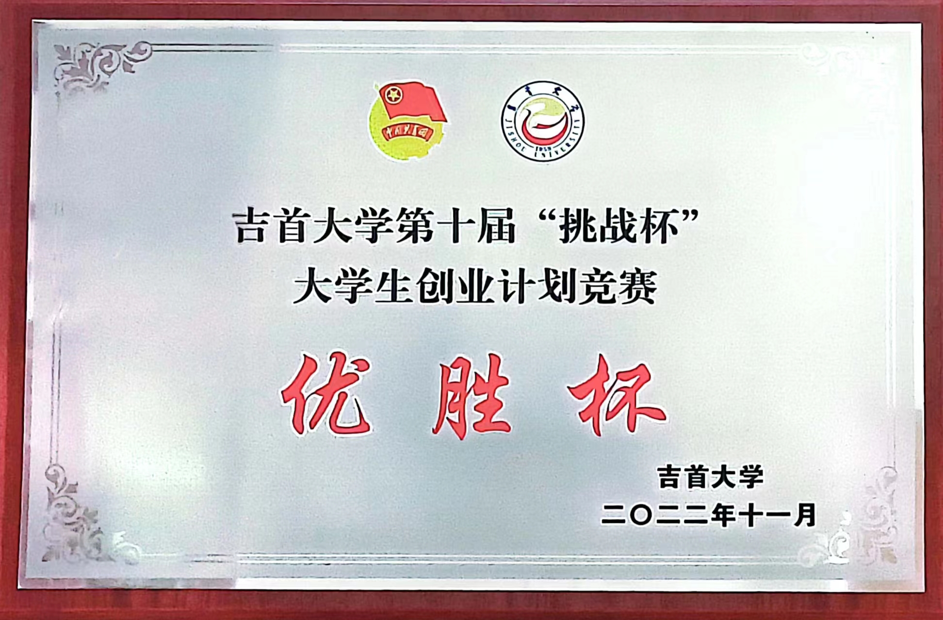 图为 伟德中国官网入口荣获伟德中国官网入口第十届“挑战杯”老员工创业计划竞赛优胜杯