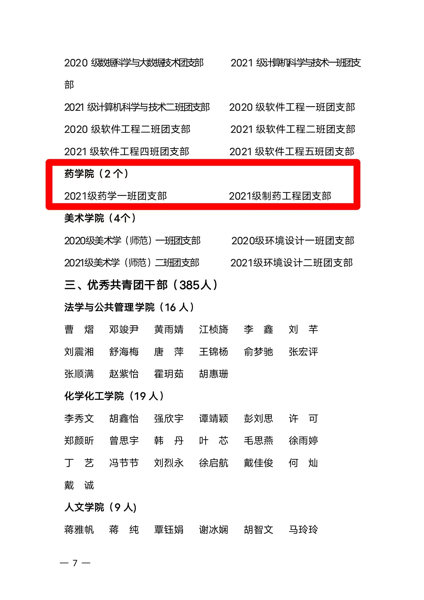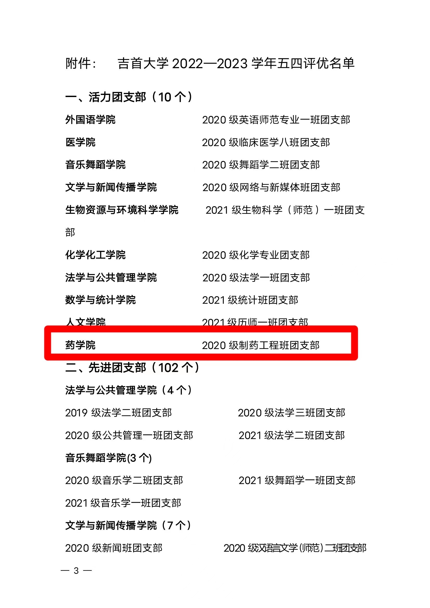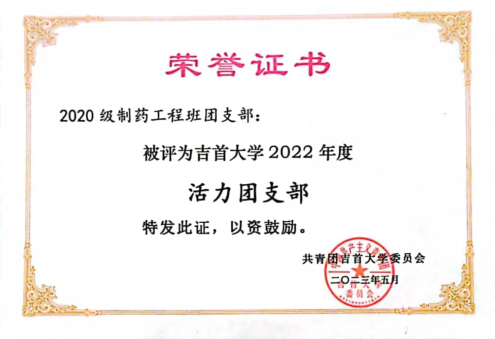 图为 2020级制药工程班团支部荣获活力团支部
