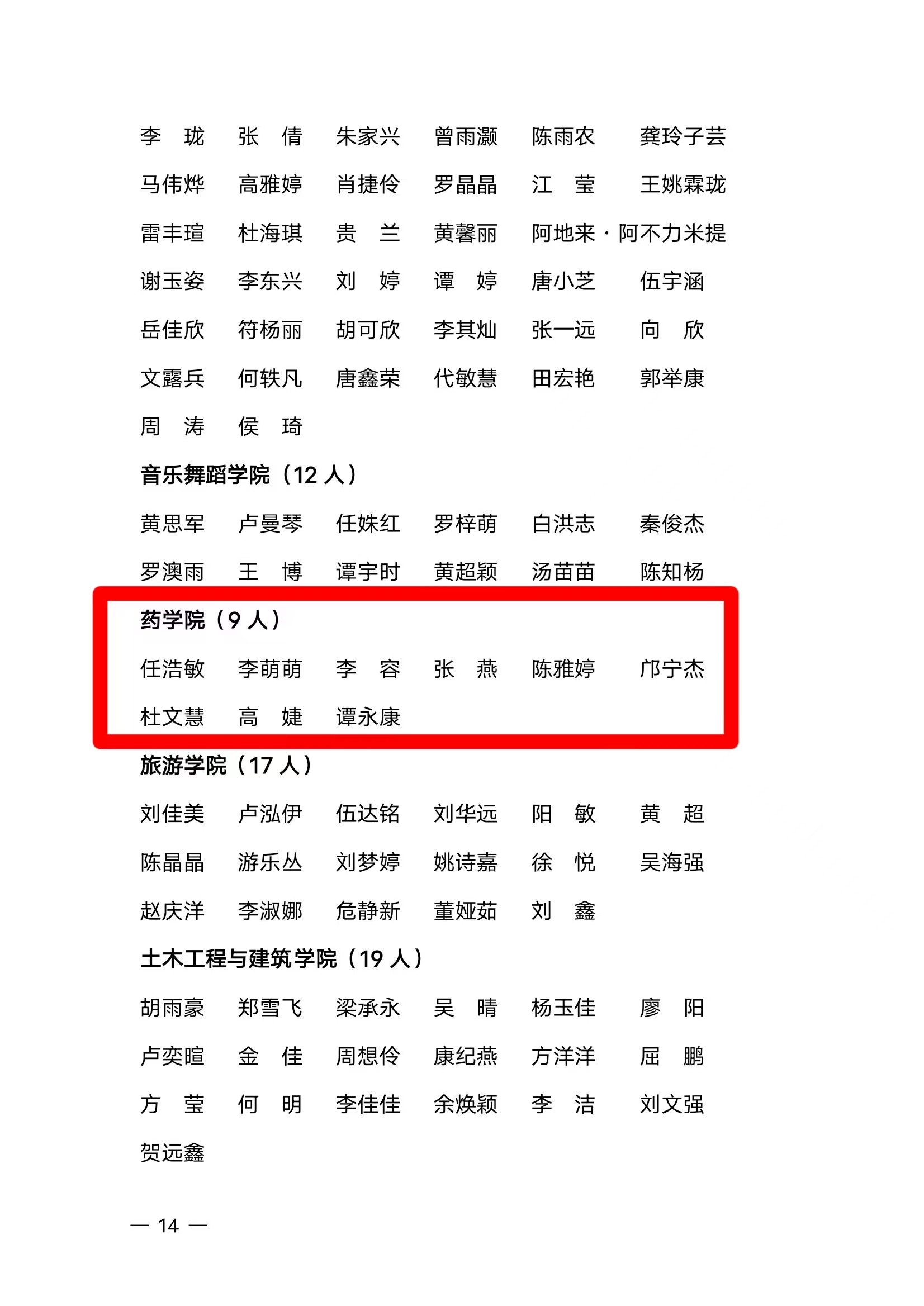 任浩敏 李萌萌 李容 张燕 陈雅婷 邝宁杰 杜文慧 高婕 谭永康