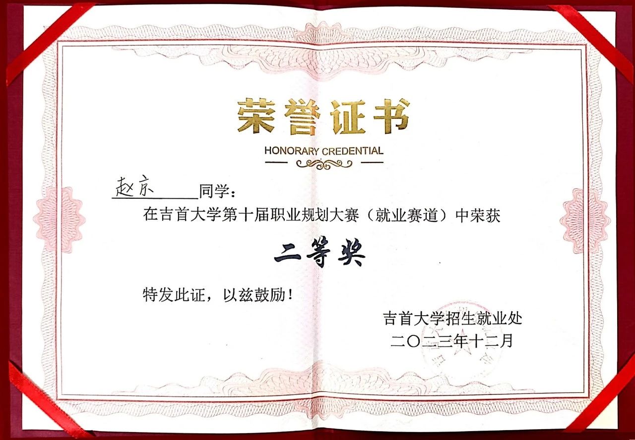 本次比赛不仅充分锻炼了同学的职业规划能力与求职应聘能力,还为同学们提供了成长交流、学习进步的平台,拓展了视野,增进了见识,使每位参与者了解到更多的职业信息和行业动态。且在决赛中,赵京同学结合时代背景与自身热爱,兼顾专业知识与实践经验,共划当下与未来,展现出公司学子的卓越风采。本次获奖不仅是对赵京同学的认可,更是对公司所有学子的勉励!