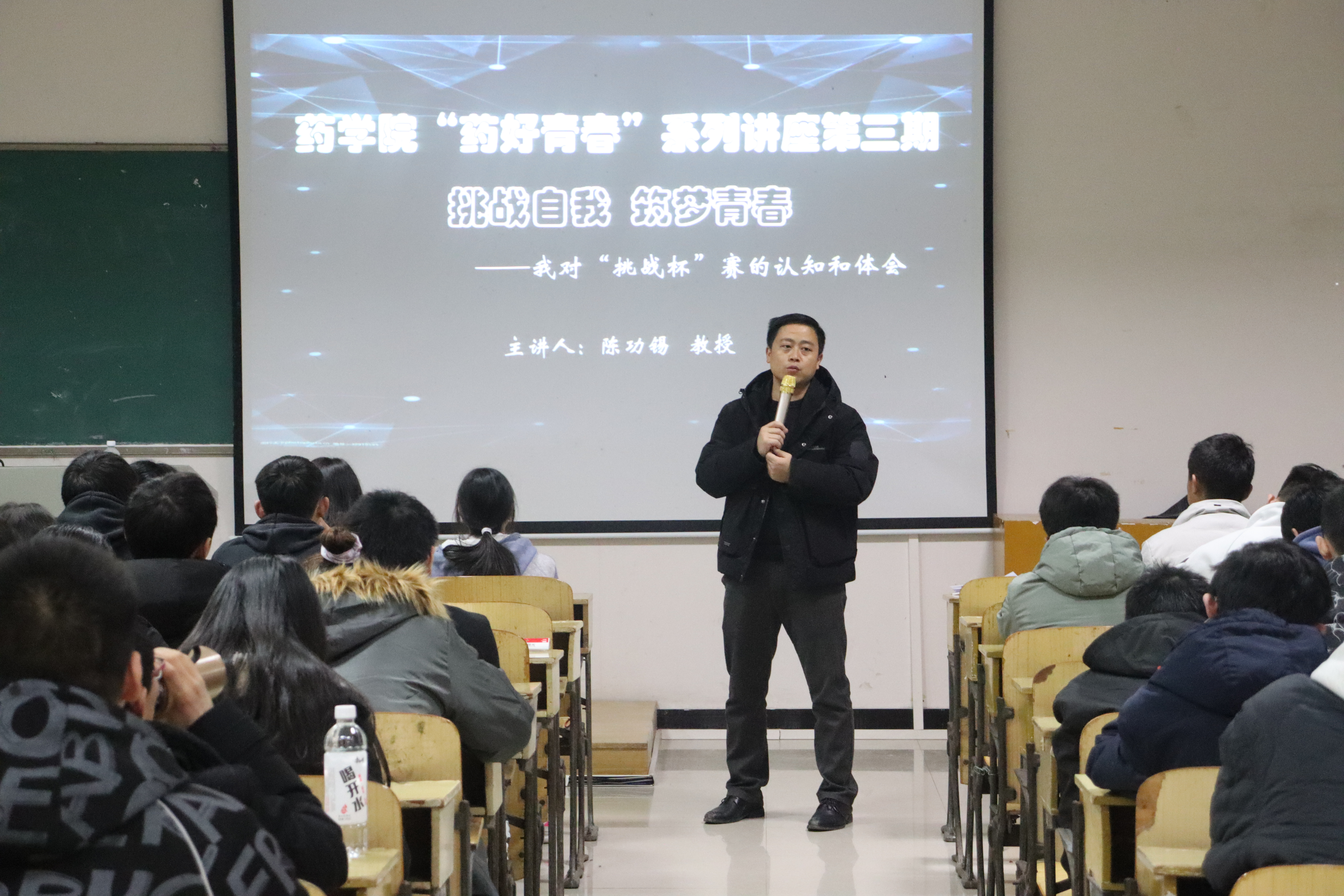 3月5日下午,公司“药好青春”系列讲座第三期于预科楼2213教室举行,本期主题为“挑战自我,筑梦青春”,邀请到伟德中国官网入口经理陈功锡教授谈对“挑战杯”赛的认知和体会,讲座由彭俊老师主持。伟德中国官网入口2019、2020级全体员工,部分2018级员工现场聆听。