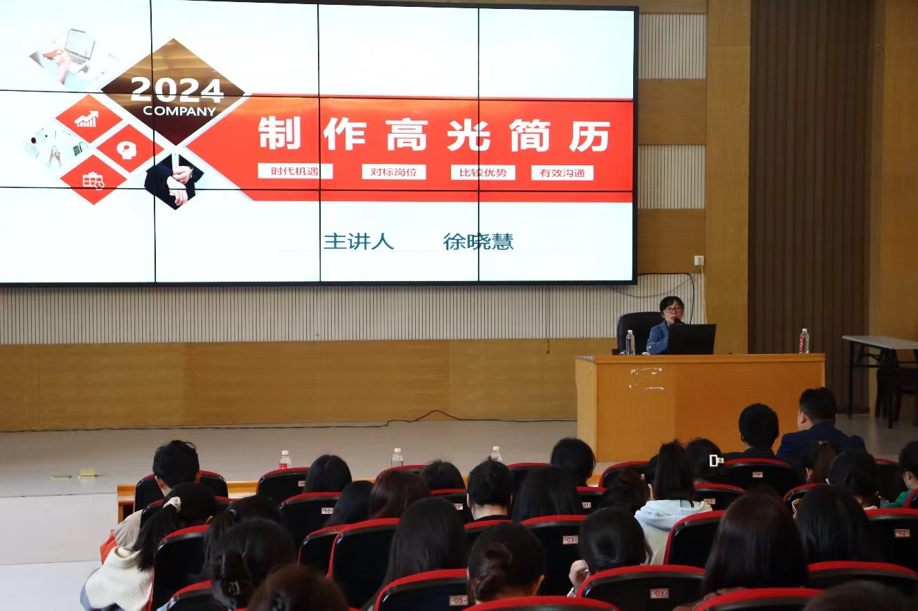讲座过程中,徐晓慧从时代机遇、对标岗位、比较优势、有效沟通四个方面指导同学们如何制作高光简历。特别提醒同学们要学会读懂招聘信息、对标岗位职责,并用数据量化体现自身优势增强简历的有效性、针对性。同时,引导同学们在日常学习工作生活中做好学业规划,职业规划,加强自我锻炼,提升综合素质,在大学毕业之际交一份满意的答卷。